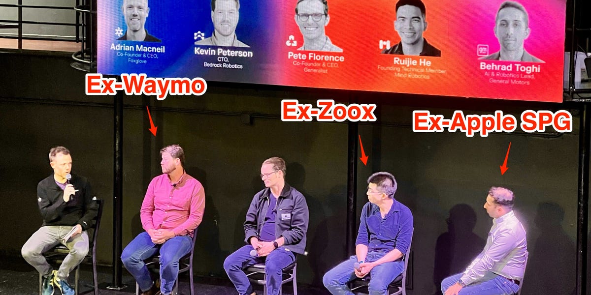 Zhao didn’t attend the Physical AI night, but he told Business Insider he was familiar with a few of the speakers and companies, including Pete Florence, CEO of Generalist robotics, who was another panelist. Zhao recalled being in the same room with Florence and others around 2023 when they were at Google DeepMind before they moved on to start a robotics outfit.